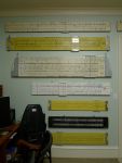 ![]() Eugene Dietzgen Demonstration Slide Rule REF Marty writes: "My Dad (Earl Gierke) used in the classroom when he taught math at what is now the University of Wisconsin Stout. He was hired by what was then Stout State College to set up the first Applied Math program at the school in 1962. I remember visiting his classroom and seeing this hanging in the front of the room. I was six at the time. Anyway, when he retired the department gave him this as a memento, and I inherited it when he passed away. I hung it in my office at work for a time, but am close to retirement myself now, so I have it at home." |