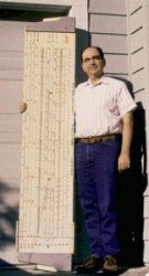 John Samson, PhD, writes: "I attended the Illinois Institute of Technology (IIT) in Chicago, IL from 1966 to 1970. One of the IIT Homecoming events in December 1969 was a Slide Rule contest, which I happened to win. My prize for winning the contest was an 8-foot long Willamsport War Model slide rule. When I inquired about the source and origin of the slide rule, I was told it was found in the basement of Siegel Hall (at that time home of the Physics and EE Departments) and, reportedly, it was used to train navigators and pilots at IIT during World War II. The slide rule is made out of pressed-board/Masonite.". Note Illinois Institute of Technology (Illinois Tech or IIT) is a private research university in Chicago, Illinois. It was established from the merger in 1940 of Armour Institute and Lewis Institute. John (in left photo holding slide rule) received his BSEE from IIT (1970), two degrees from MIT (Massachussettes Institute of Technology) SMEE (1972) and EE (1973), and his PhD (1992) from USF (University of South Florida). He used a K&E Decilon during school. John spent his entire career in industry and has been a part-time faculty at several universities along with being a guest lecturer at various universities. John is currently a Research Affiliate at MSU (Morehead State University). |