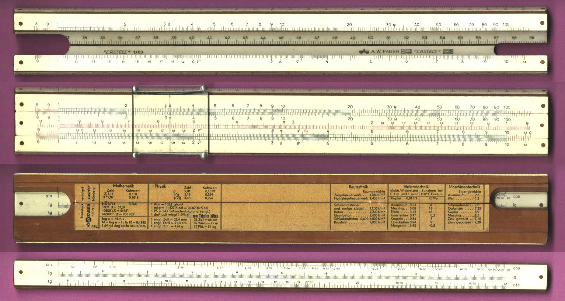 Faber Castell 989 Complex Slide Rule Calculator (Komplex-Rechenplatte) Made in Germany - This basically an integrated slide rule with 3 degrees of freedom and a nomograph. ![]() Summary of Function By Dieter von Jezierski and Rodger Shepherd