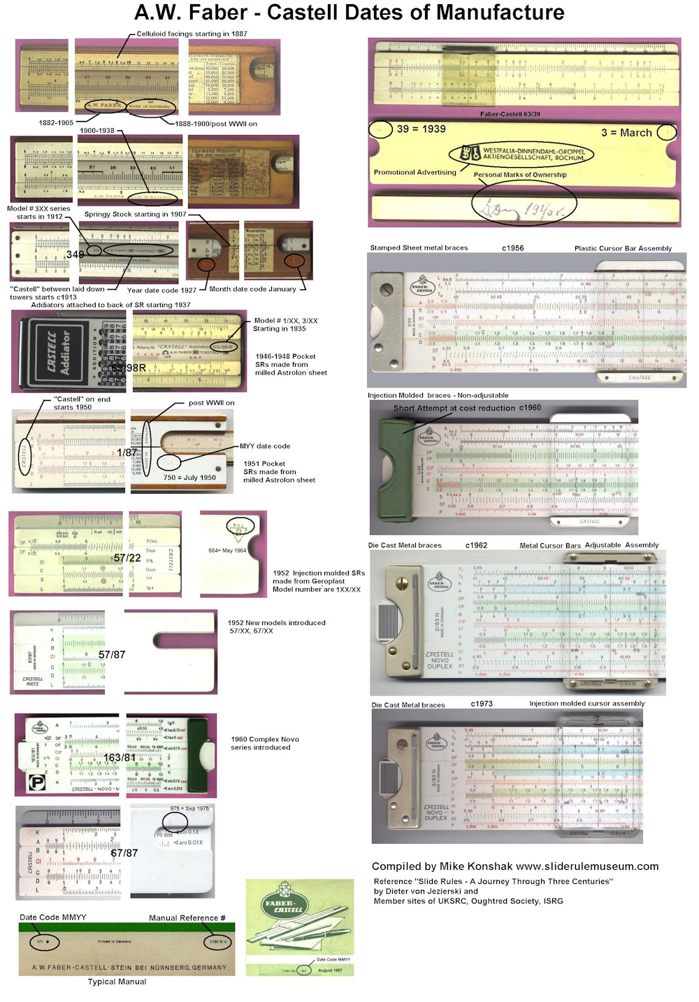 Peter Holland has made an update of his extensive catalog of Faber-Castell Slide rules. It is very informative and can be used for identifying dates It's an 8MB PDF file. |