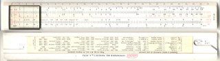 Filotecnica Salmoiraghi Projection Slide Rule Made in Italy - Serial Number 45576 Front Scale Sen, Tan, 1/X, N, N [ N2, N3, Log N, archi ] Note: Display manipulated by top dials, Two drums split between the two 'N's. Photos Donated by Andrea Celli Collection, Italy ![]() |