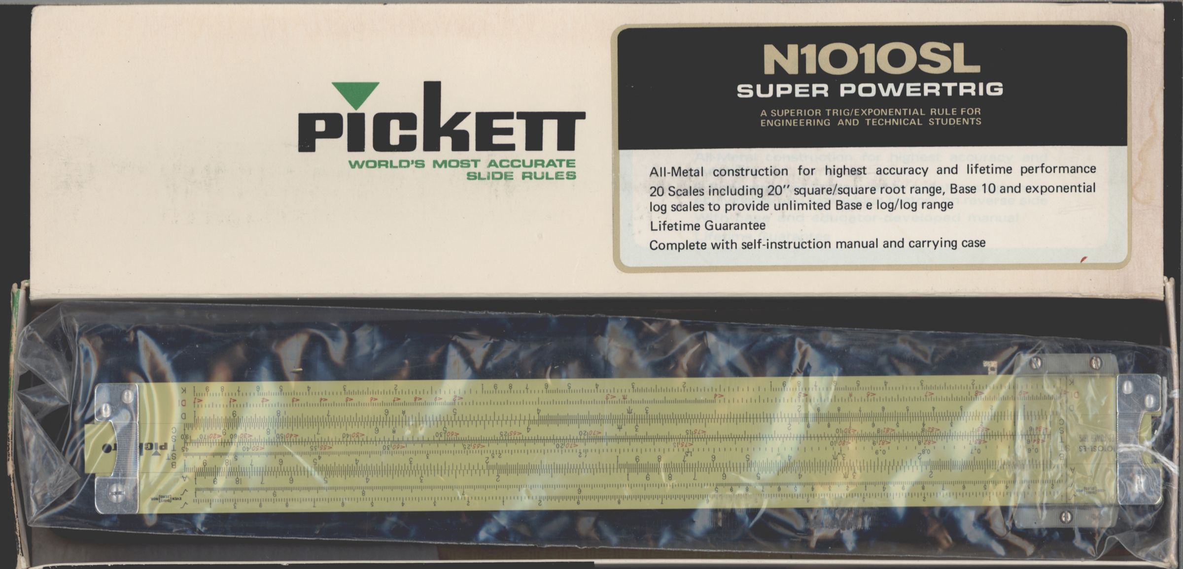 Pickett No. 120 Trainer. Sleeve, manual and original retail box | K, A [ B, T Cot, S Cos, CI, C ] D, L | Note: This was Pickett's first attempt at a low cost all plastic slide rule. | $5 |