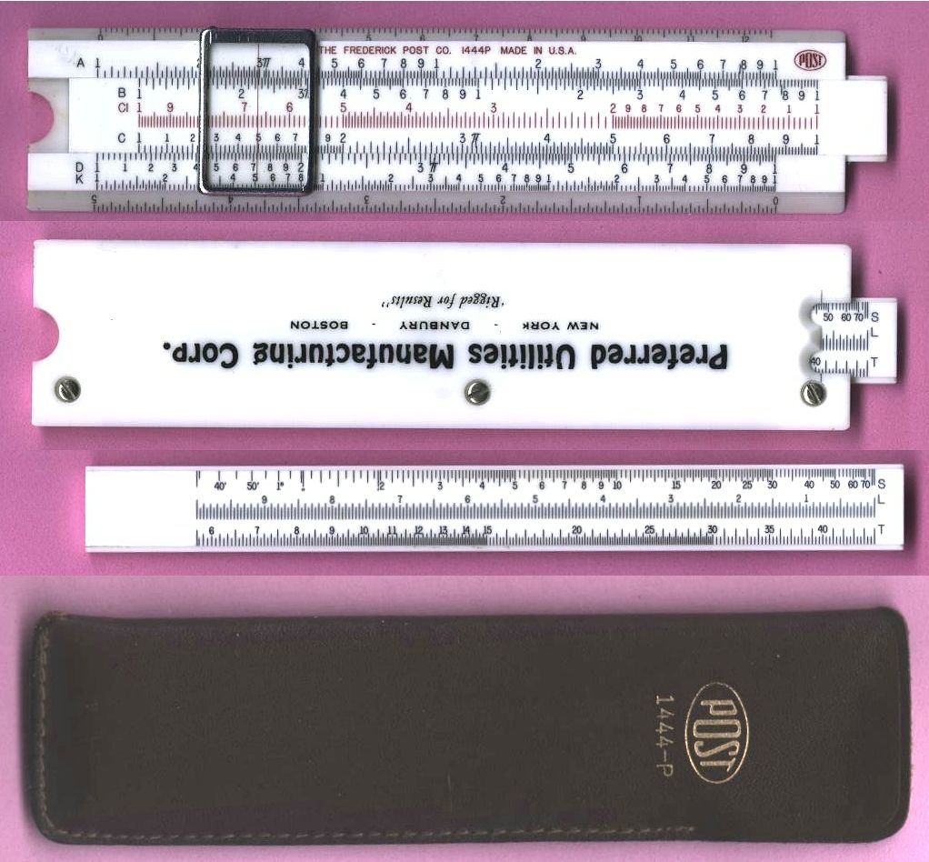 Made in USA by R.C. Pickett & A.F. Eckel - 30 scales - ©1947 Early Magnesium Stock with serial number on cursor blocks. No Logo at its introduction. Gray Rubber sleeve. Excellent. | $80 |