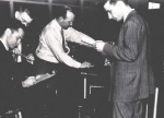 Los Alamos AntiProton Equipment (1955) From left, Emilio Segr?Clyde Wiegand, Edward Lofgren,