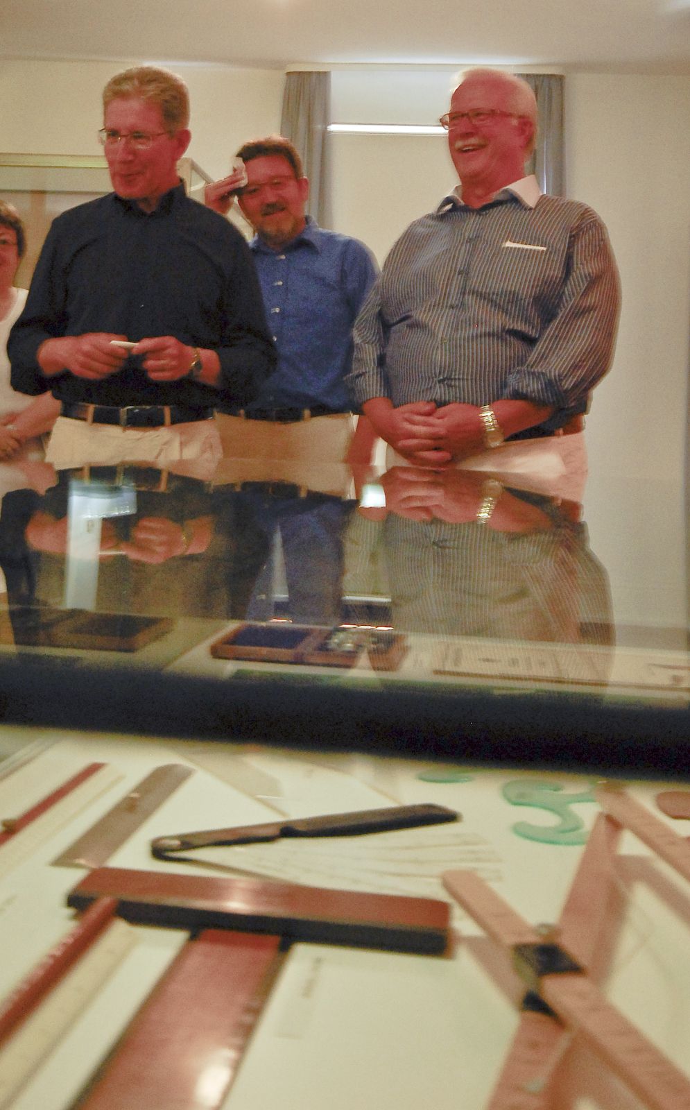 Andreas Faßbender presents his Nestler slide rule exhibit in the Kulturbahnhof railroad station in Korschenbroich, Germany. 2-13-2023