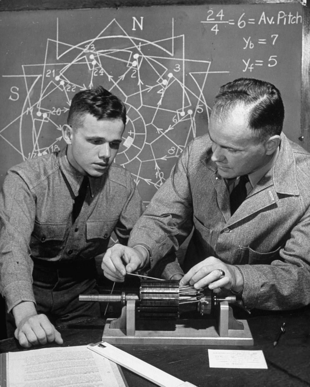 USMA Instructor Giving a Cadet an Electric Motor Demonstration (1941 Life)
