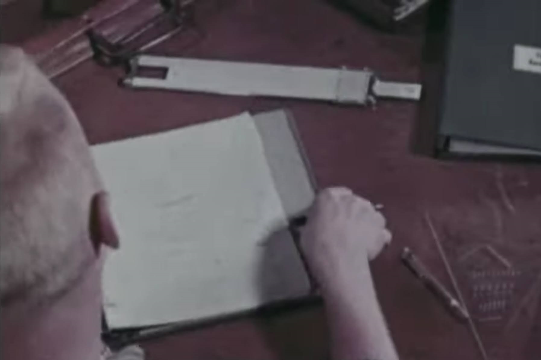 "UFO - Computer Affair" British 1953 TV Series Episode2. Commander Staeker Studies Sliderule at 13min55sec